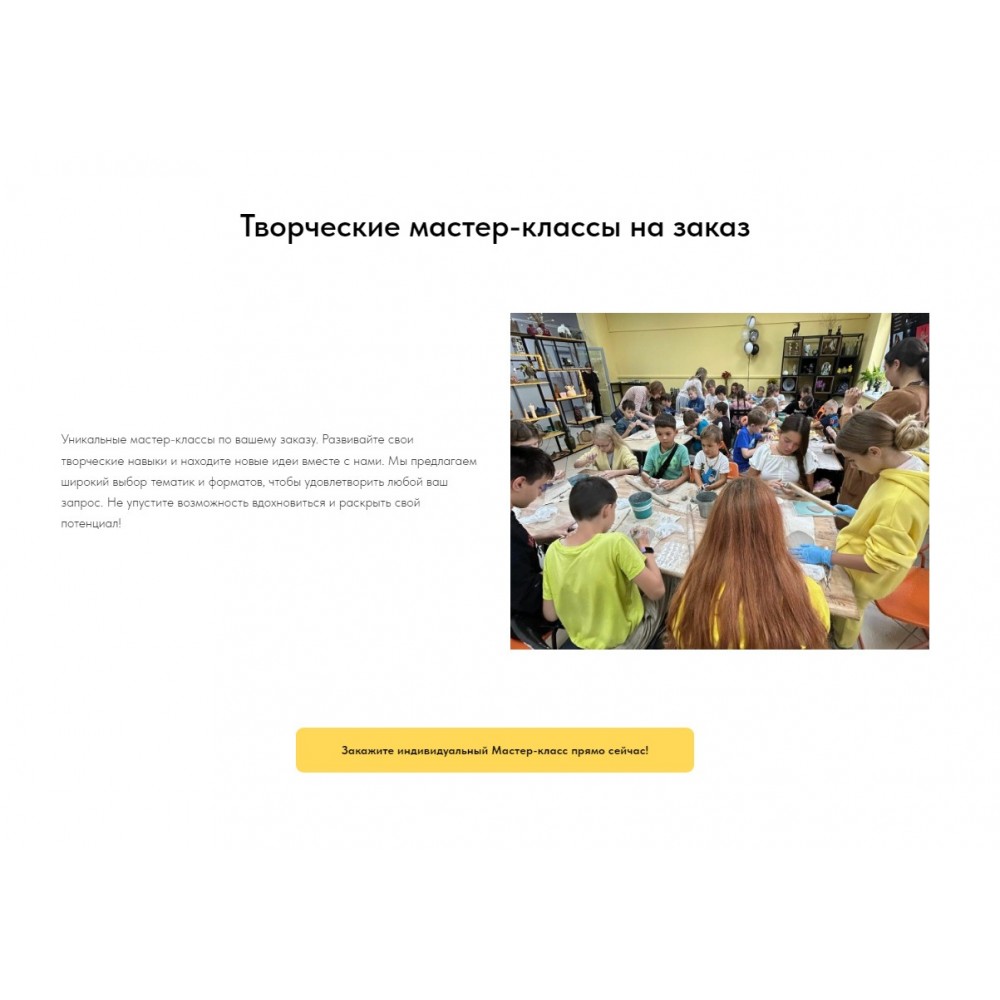 Независимо от того, нужен ли вам простой сайт-визитка или сложный интернет-магазин, мы готовы воплотить ваши идеи в реальность. Свяжитесь с нами уже сегодня и начните привлекать больше клиентов с помощью профессионального и эффективного Лендинга для вашей арт-студии.